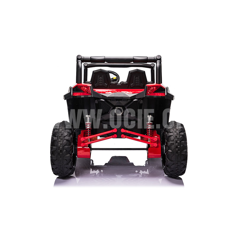 BATTERY 12V10AH,MOTER 12V 555(120W)*2 (RPM 20000),2.4G R/C,FRONT & REAR LIGHT,MUSIC,TWO OPEN DOOR,USB/SD/MP3 SOCKET,BLUETOOTH,PLAYER LOW BATTERY ALARM,WITH TRUNK,TWO SEAT WITH TWO SEAT BELT,FOUR WHEEL SUSPENSION,DUST-PROOF SWITCHES,EASY CONTROL STEERING WHEEL WITH ACCURATE STEERING ANGLE