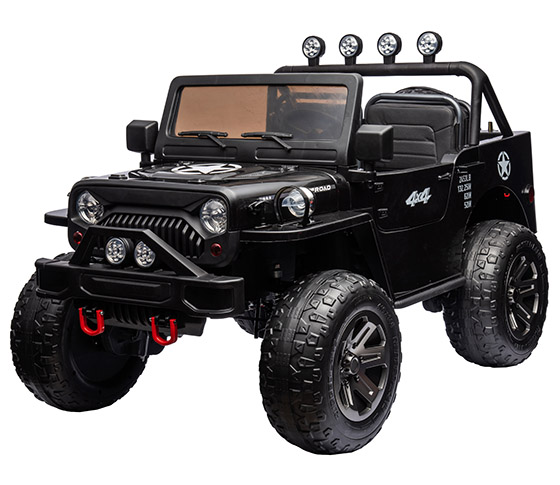 BATTERY 12V10AH,MOTOR 550#*2 ( 24V7AH,MOTOR 24V*2 ),LIGHT,MUSIC,2.4G R/C,MUSIC PLAYER(USB SOCKET,VOLUME CONTROL,POWER DISPLAY),PLASTIC WHEELS(5 WHEELS),PLASTIC SEAT,FOUR WHEELS SUSPENSION,REMOVABLE BATTERY CASE,HIGH AND LOW SPEED,ONE-BUTTON START,THREE SEATS,ALUMILUM FRONT BUMPER,SPEED:5KM/H