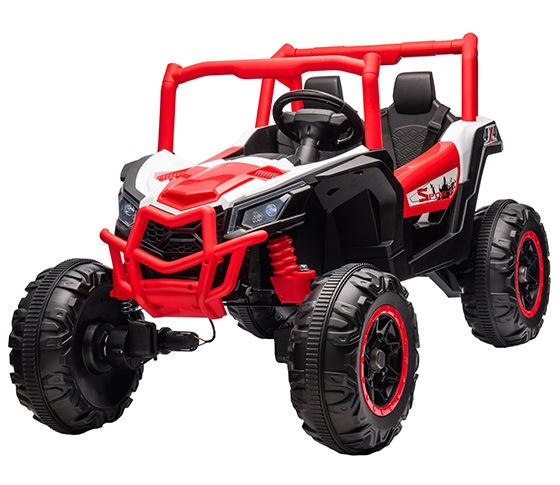 BATTERY 12V7AH,MOTOR 550#*2 ( BATTERY 24V7AH,MOTOR 550#*4 ),LIGHT,MUSIC,ONE BUTTON START,LIGHT SWITCH,FORWARD AND BACKWARD,SEAT BELT,HIGH AND LOW SPEED,TWO DOORS OPEN,MP3/USB SOCKET,FOUR WHEELS SUSPENSION
