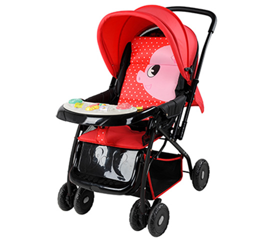 IRON FRAME;FRONT WHEEL 4*6",REAR WHEEL 2*7";SMALL VOLUME AFTER FOLDING;REVERSIBLE AND FLEXIBLE HANDLE;SEVERAL POSITION ADJUSTABLE BACKREST;REMOVABLE TOY WITH MUSIC;FRONT WHEELS WITH BRAKES CAN FIX THE DIRECTION AND REAR WHEELS WITH BRAKES