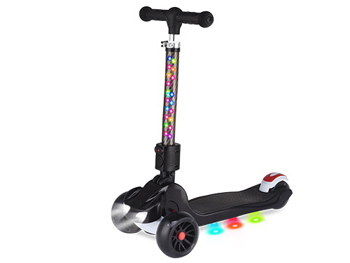 FRONT 120MM*40MM / REAR 90MM PU FLASHING WHEELS PP + NYLON DECK ADJUSTABLE ALUMINUM T-BAR WITH LED FLASHING LIGHT TPR HANDLE GRIP LED LIGHT ON SCOOTER FRONT AND DECK BOTTOM ABEC-7 BEARING